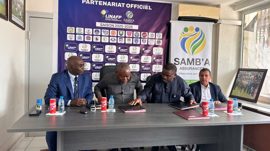 Cette signature faite au siège de la LINAFP sis au centre-ville, s’est déroulée en présence de Brice Mbika Ndjambou, président de la LINAFP, du Dr. Andrew Gwodog, Président Directeur général de Samb’a assurances, ainsi que de Landry Nkeyi, Président de l’association des clubs professionnels de football (ACPF).